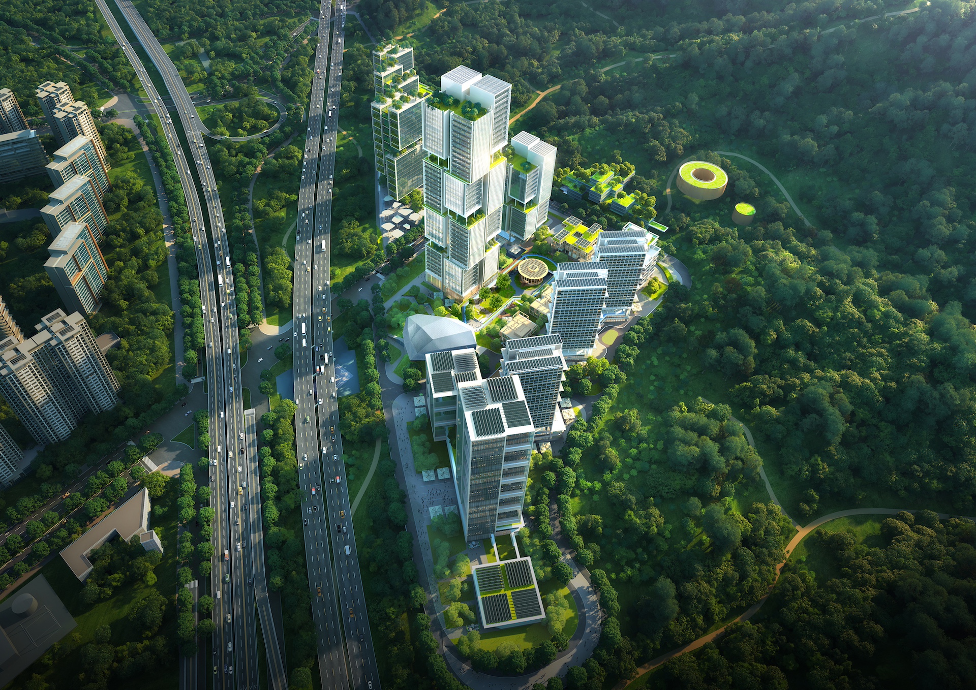 未来建筑工社,以跨界理念打造无界,将自然与城市丶产业和家园丶实验和体验融为一体,构建产业x家园共同体。木石之盟,是建筑行业园区与中国传统美学的结合;以榫卯为灵感,融合城市和自然。沿绿毯延续,构建自然生长多元活力行业聚落。园区致力於近零碳可持续发展策略,清洁能源应用,可再生能源占比超10%,年碳汇量达15,000kgCO2