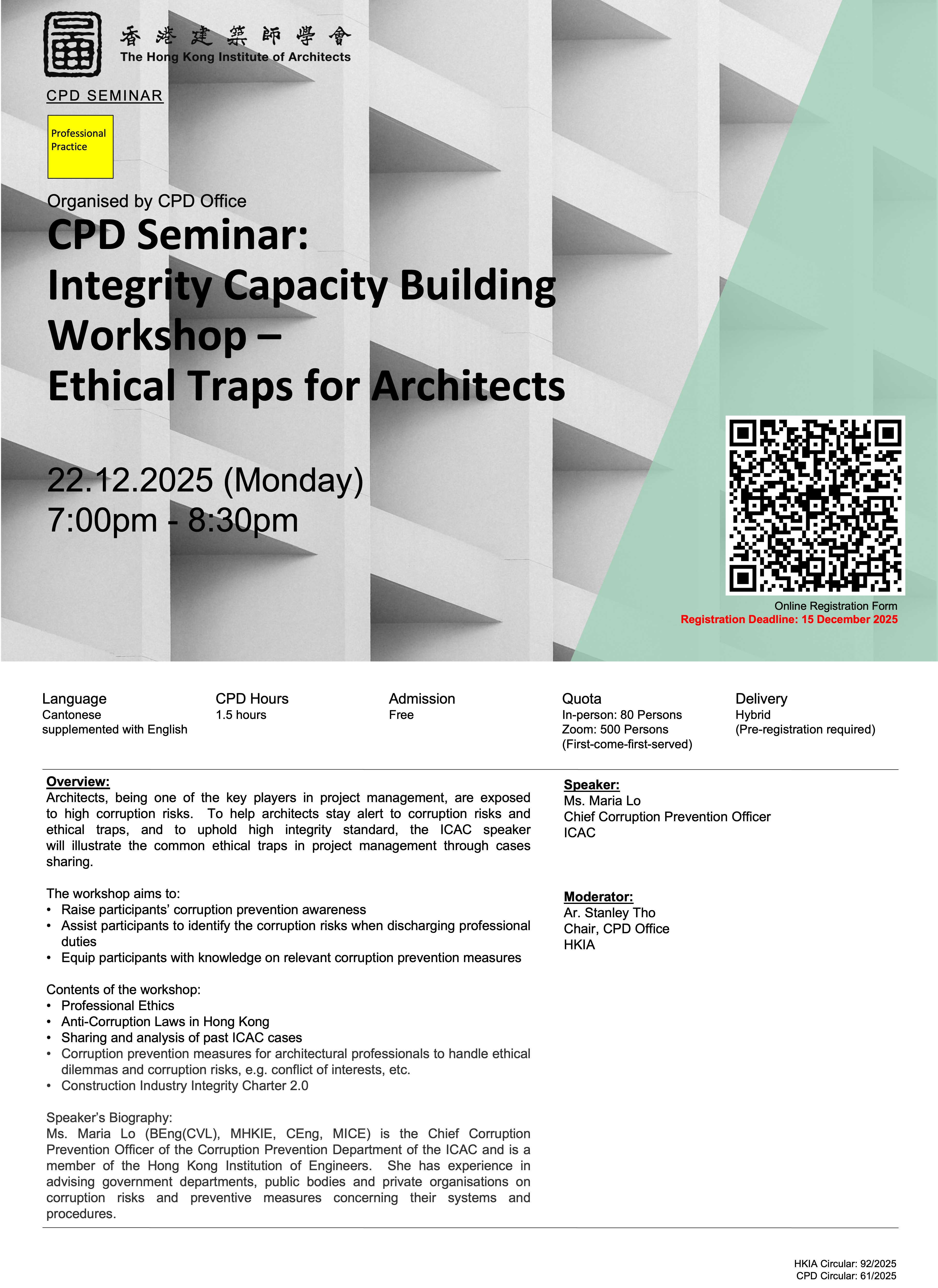 CPD Seminar: Integrity Capacity Building Workshop – Ethical Traps for Architects