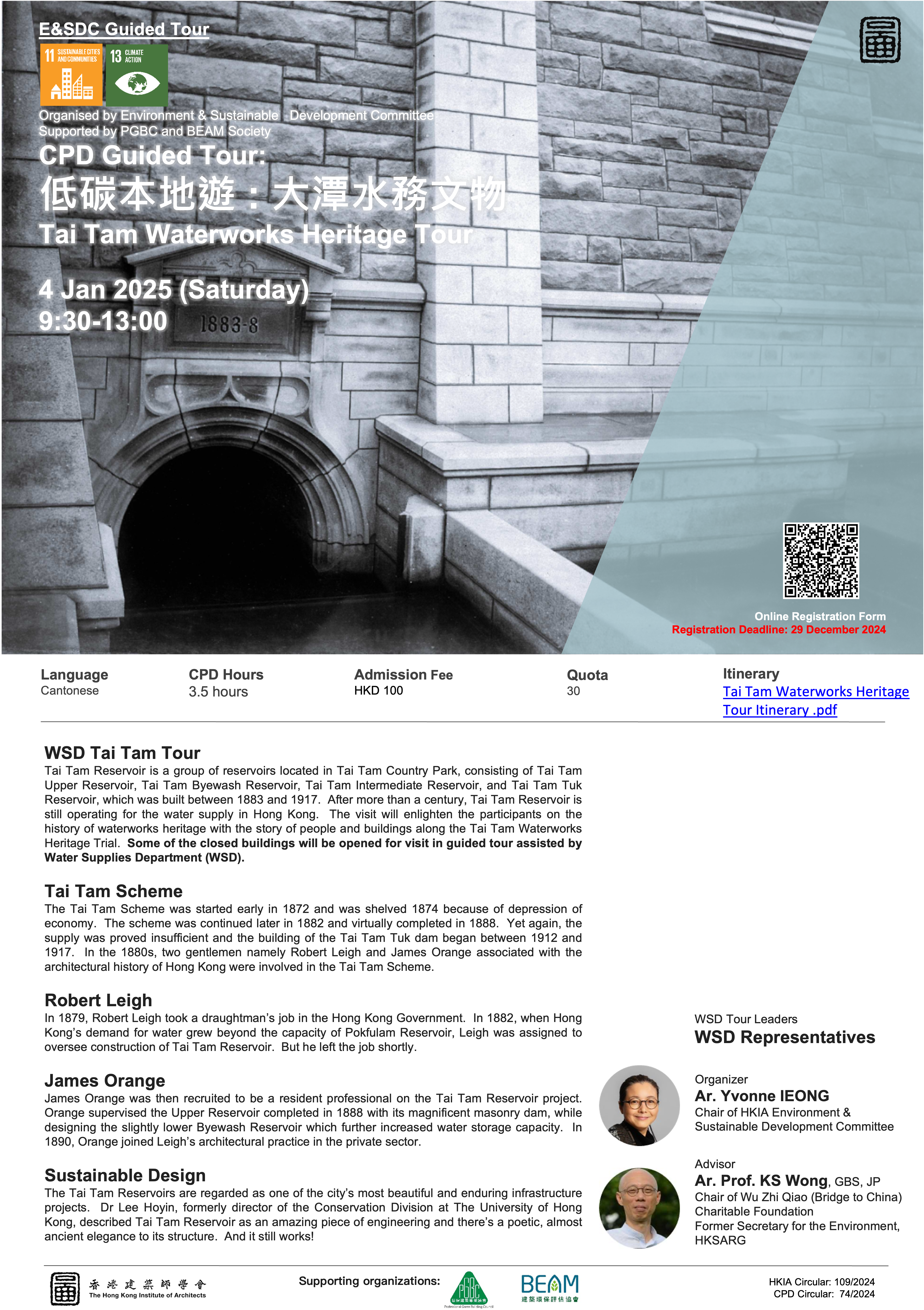 E&SDC CPD Guided Tour: Tai Tam Waterworks Heritage Tour