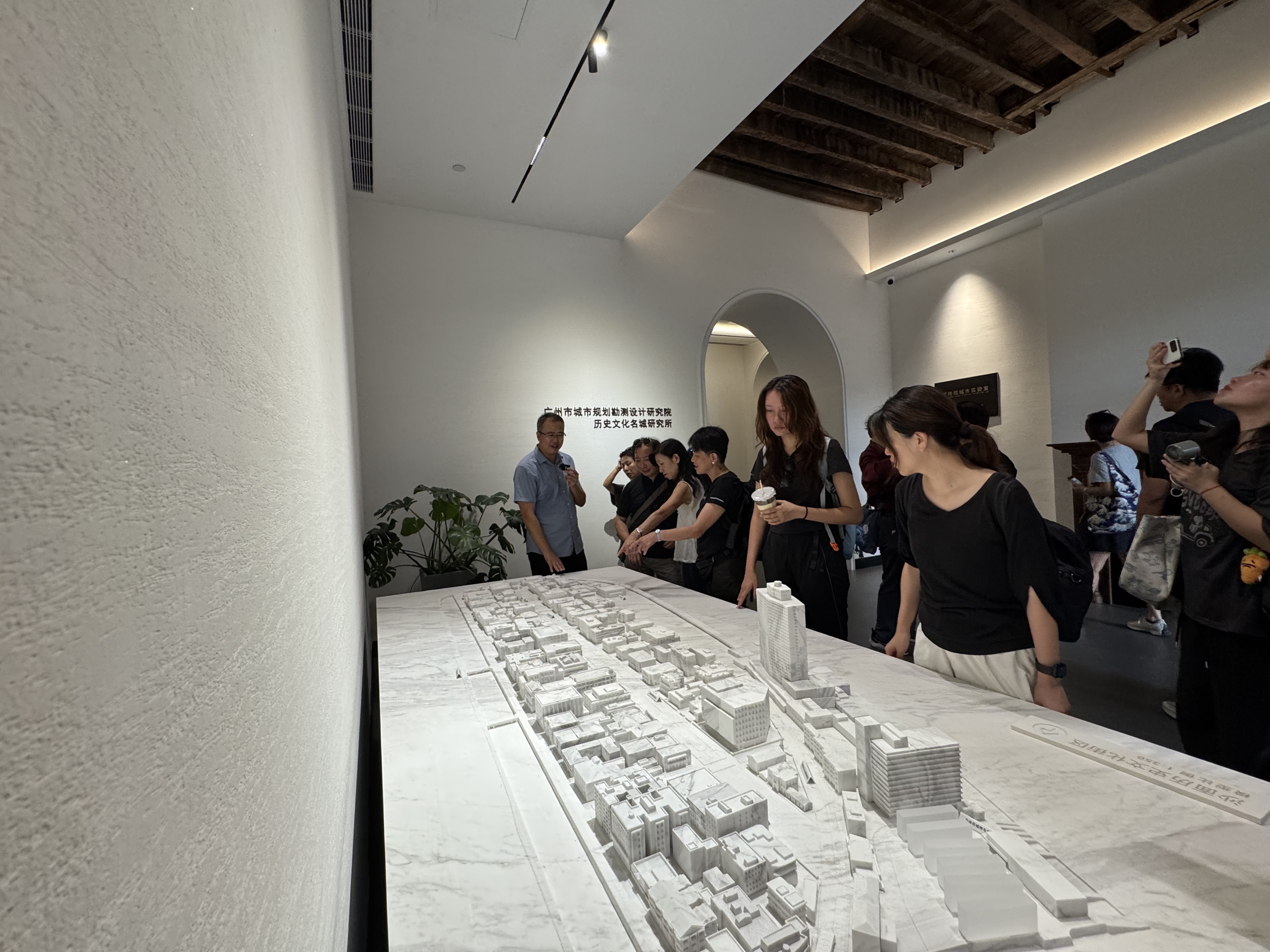 梁以华建筑师带领团队参观了番禺紫泥十二门、粤剧艺术博物馆、永庆坊、泮塘五约城中村、沙面岛、法国兵营旧址和法国东方匯理银行及锦纶会馆等广州历史文化遗址及街区,并进行了详细讲解介绍。