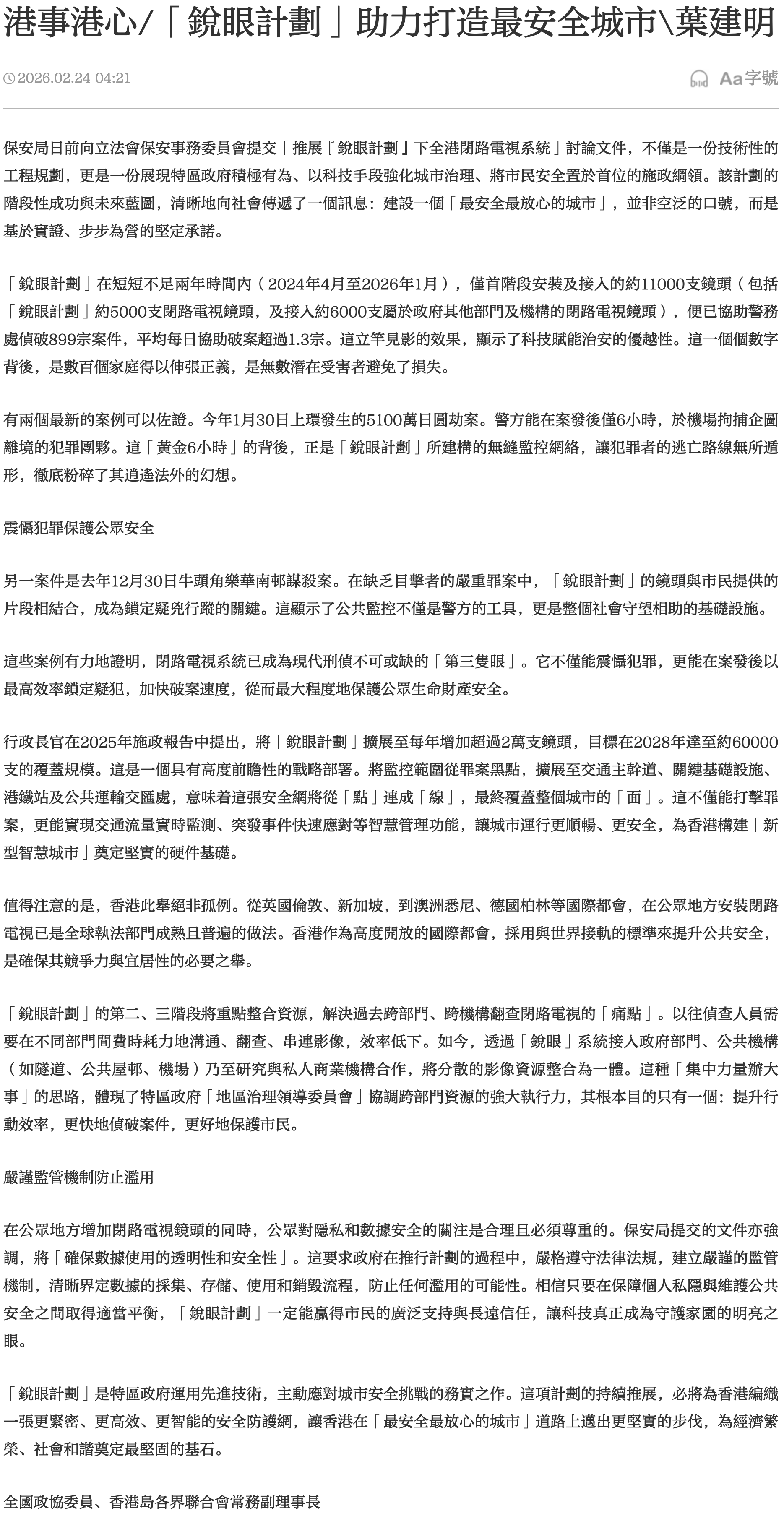港事港心/“锐眼计划”助力打造最安全城市\叶建明