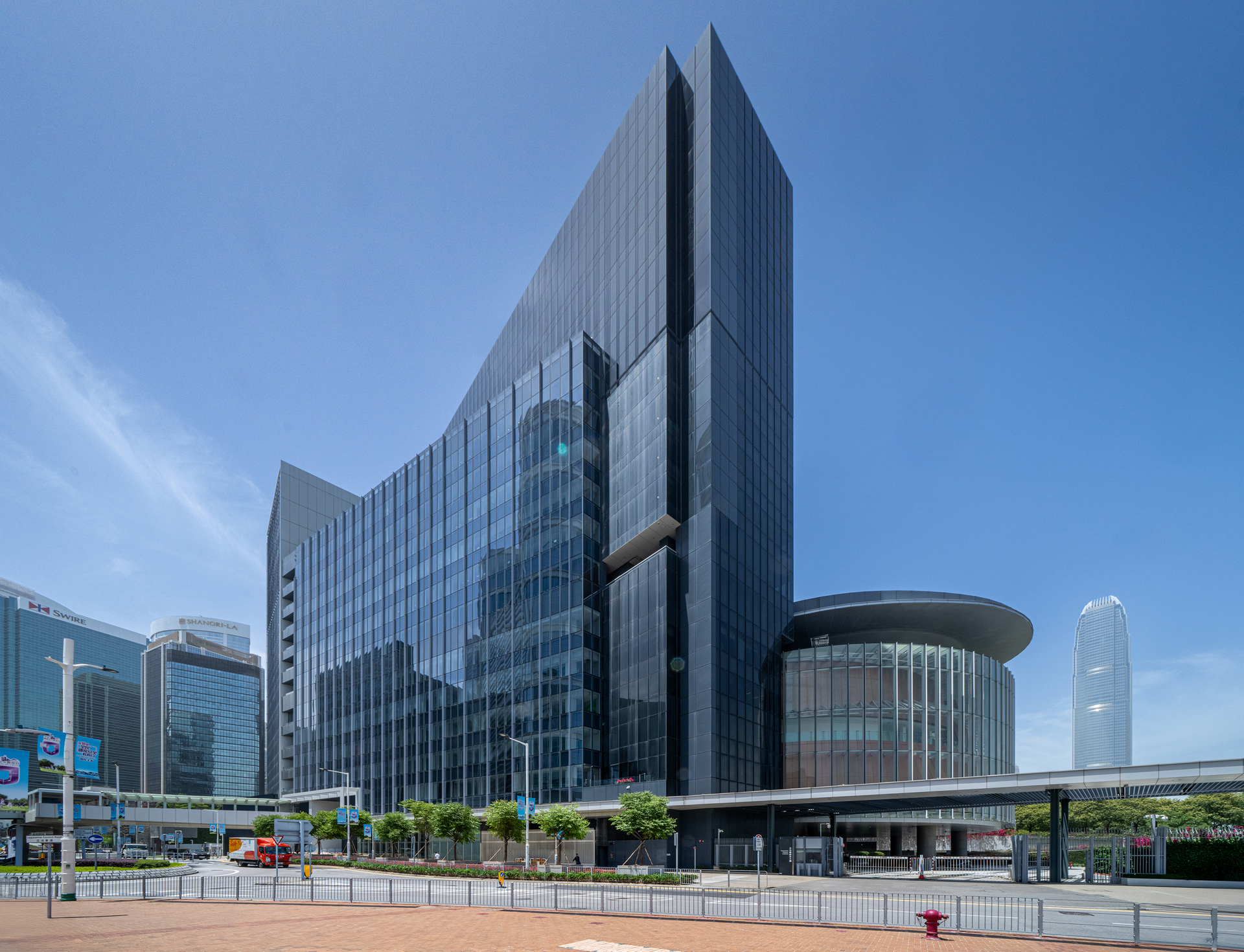立法會綜合大樓擴建項目以「向前邁進」為設計概念,三角形建築輪廓朝向維港象徵香港邁向光明未來。擴建新增約12,000平方米建築面積,為議員及秘書處提供辦公空間及設施。設計與現有建築及周邊環境協調一致保持添馬項目整體性。項目廣泛採用「組裝合成」建築法,提升施工效率及生產力,整體採用率達36%,議員設施部分更達88%。