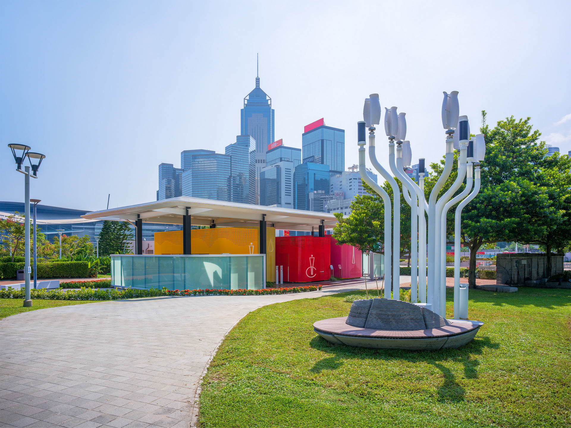 「邁向淨零」- 低碳城市中心项目工程是創新城市形態的典範。此項目符合《氣候行動藍圖 2050》,成功實現60%的隱含碳排放和70%的運營碳排放減少,達到世界綠色建築委員會標準。這標誌建築與海濱融為一體,呼應維多利亞港的景觀,展示香港城市形象。通透性設計及室內植物提供自然採光和交叉通風,充分體現對公園使用者福祉的關懷。