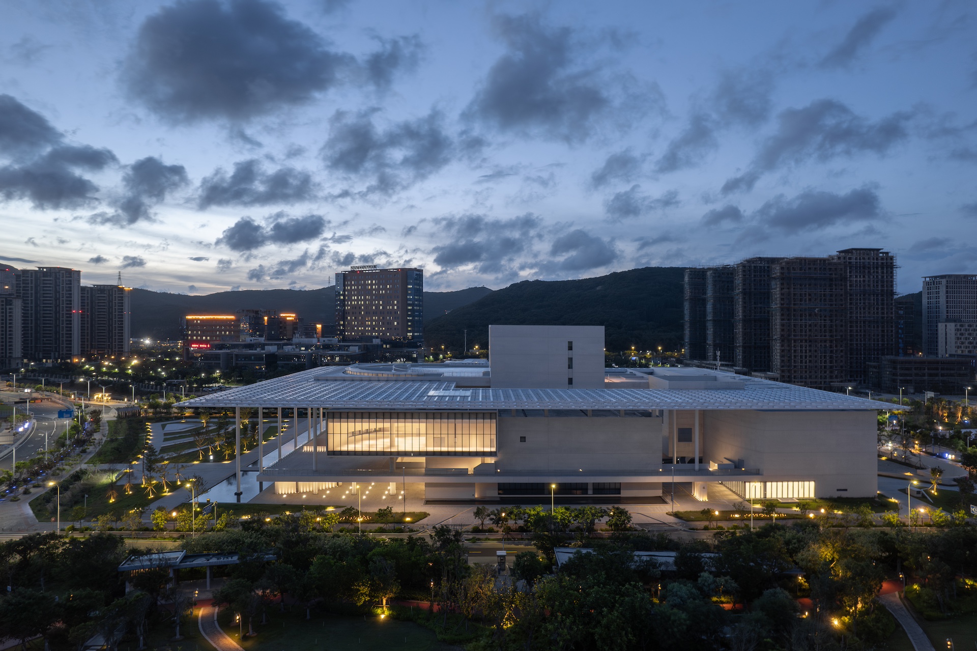 平潭國際演藝中心位於福建省平潭綜合實驗區,坐落在金井灣片區中軸線的東北端,面朝開闊的海灣景觀。規劃用地面積31374㎡,建築面積38973㎡,項目包括1500座大劇院、400座多功能廳及公共文化中心三大主要功能,為綜合乙類劇院,檔次定位國內一流,國際先進,將成為平潭綜合實驗區並輻射周邊地區的最具規模、地標性的演藝及文化藝術中心。