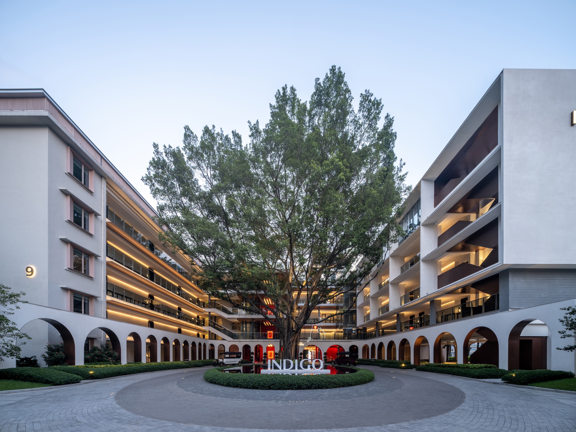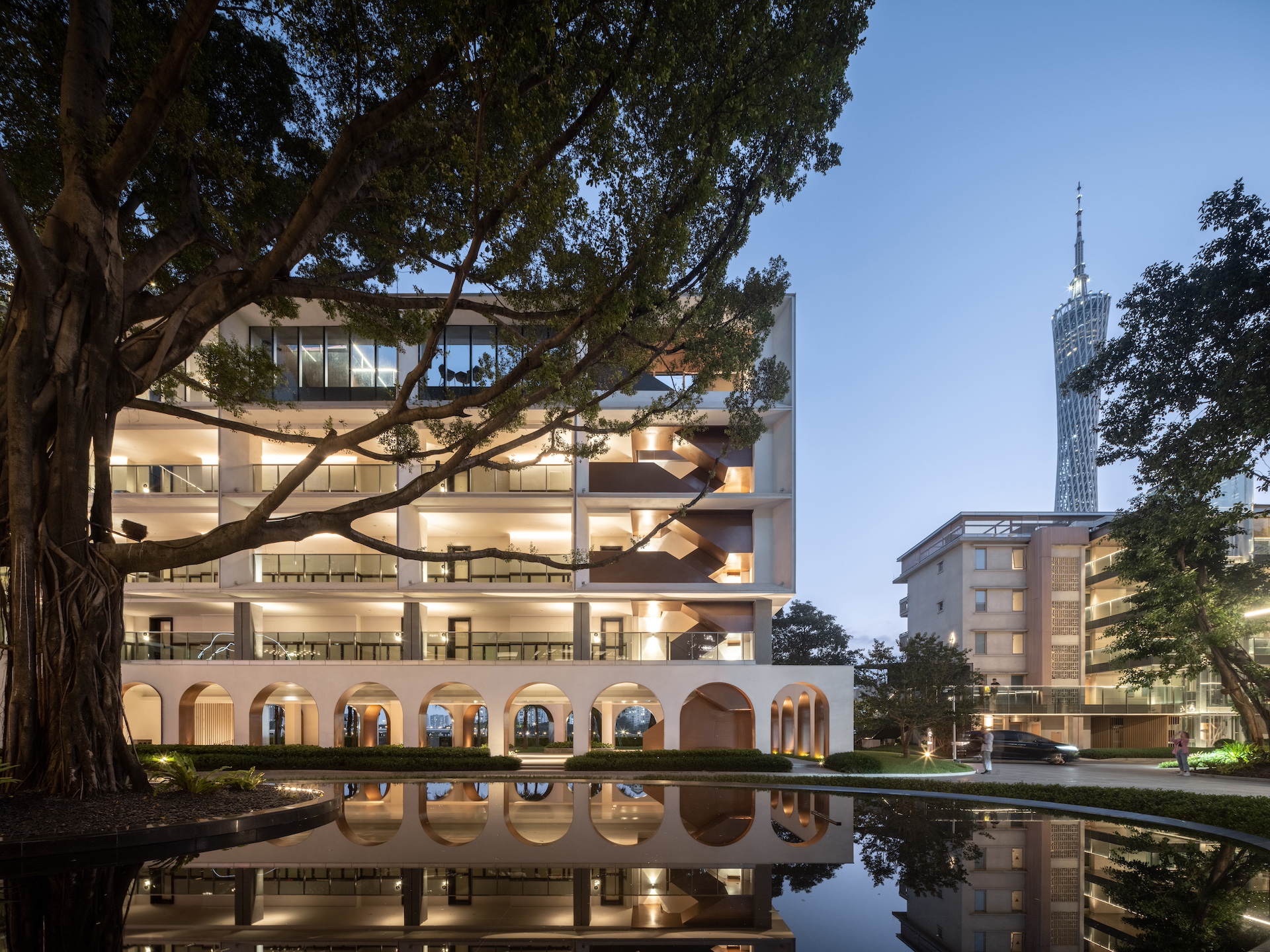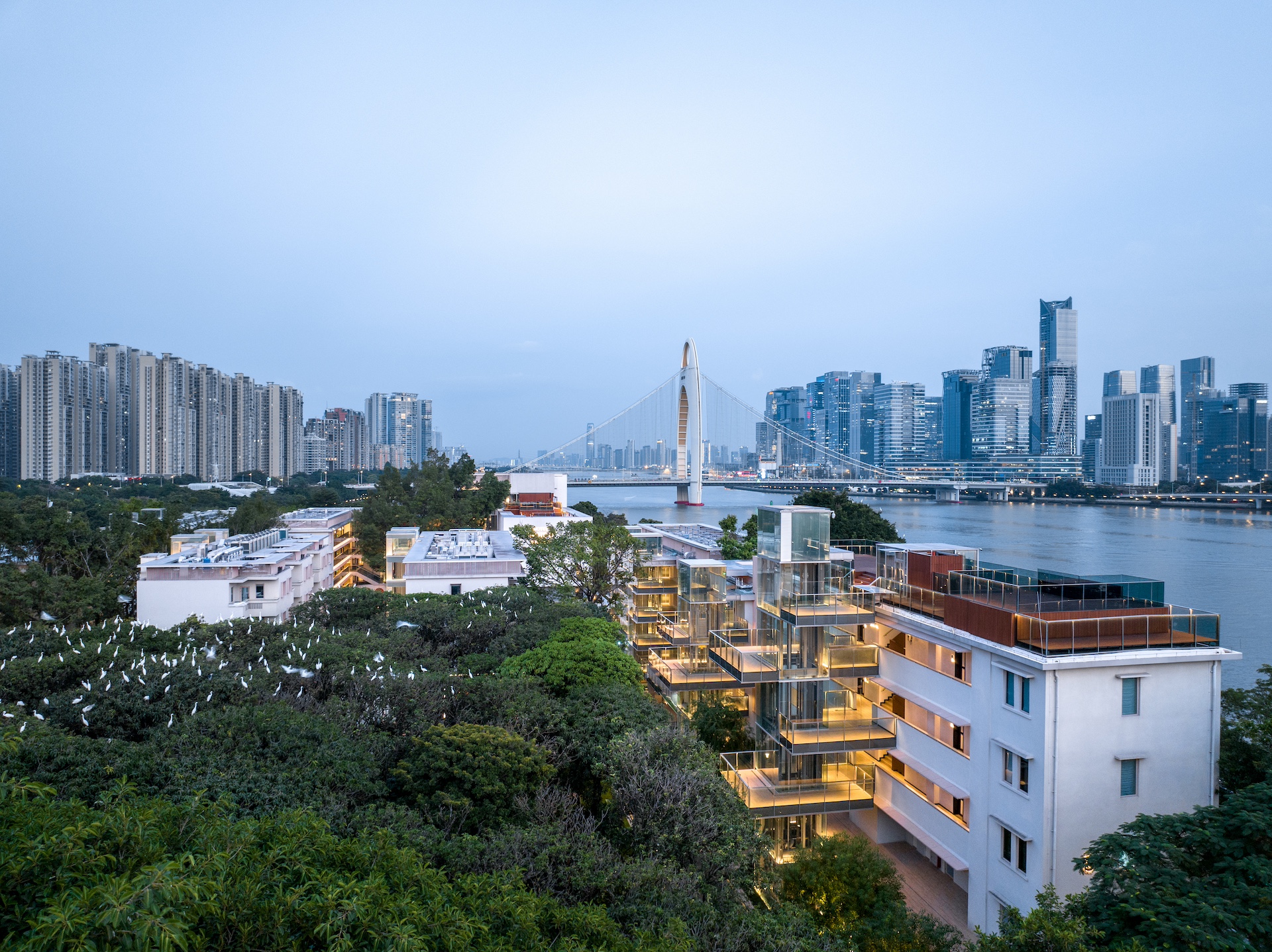 項目位於廣州市海心沙島東部,三面臨江,北接花城廣場、南望廣州塔、西接二沙島、東臨珠江。 酒店用地面積為15823㎡,原有建築測繪面積為22644㎡,改造後總建築面積為32102㎡。 酒店項目為4-6層,地下1層。建築高度為12.10m~17.40m。首層至二層為商業、酒店大堂、餐廳、健身設施、游泳池、室外公共連廊,二層至六層為客房區,地下一層為設備用房。