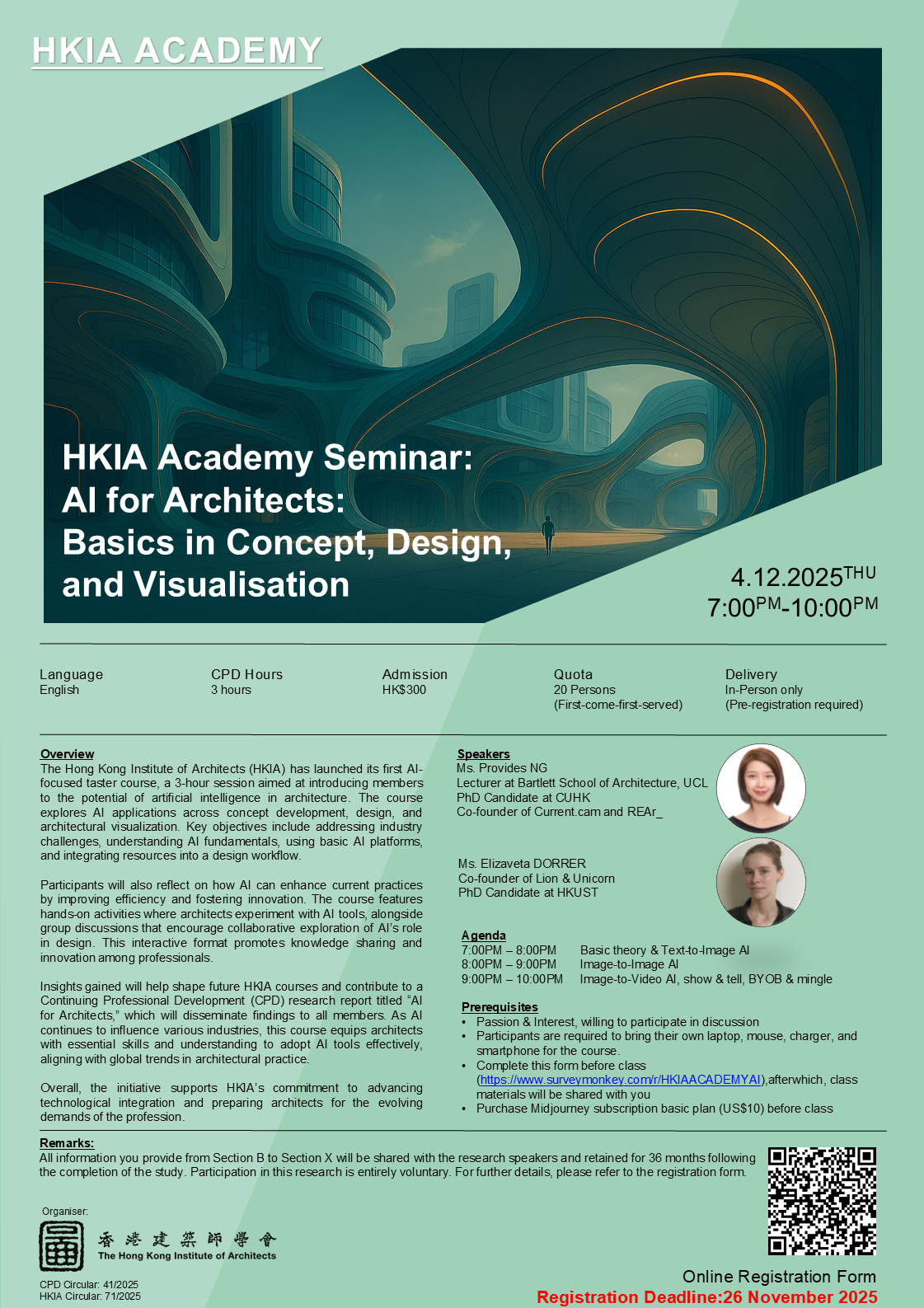 HKIA Academy Seminar: AI for Architects: Basics in Concept, Design, and Visualisation