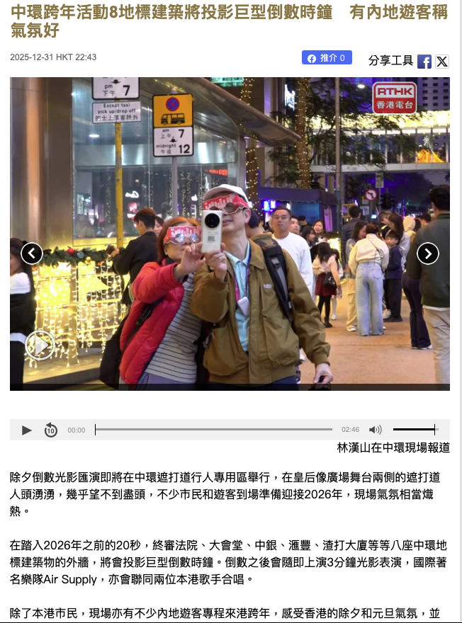 中環跨年活動8地標建築將投影巨型倒數時鐘 有內地遊客稱氣氛好 rthk.hk 即時新聞 https://news.rthk.hk/rthk/ch/component/k2/1838199-20251231.htm