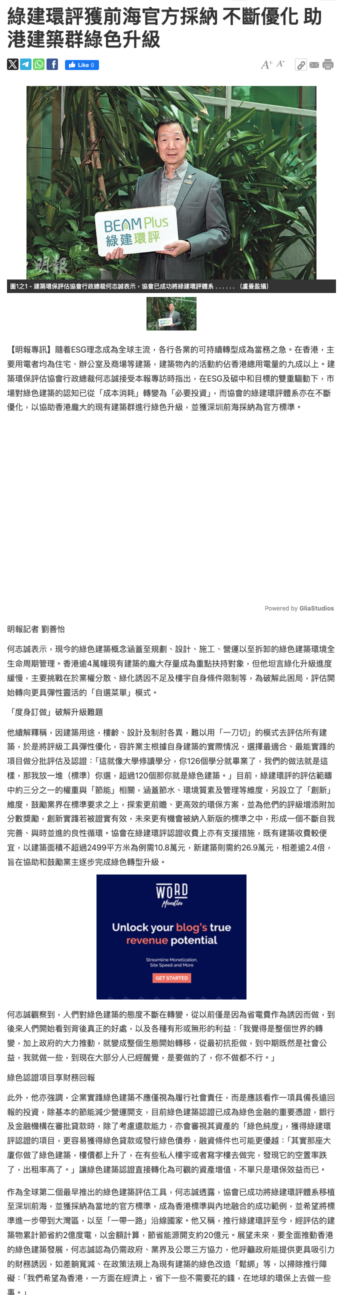 綠建環評獲前海官方採納 不斷優化 助港建築群綠色升級 明報新聞網 經濟