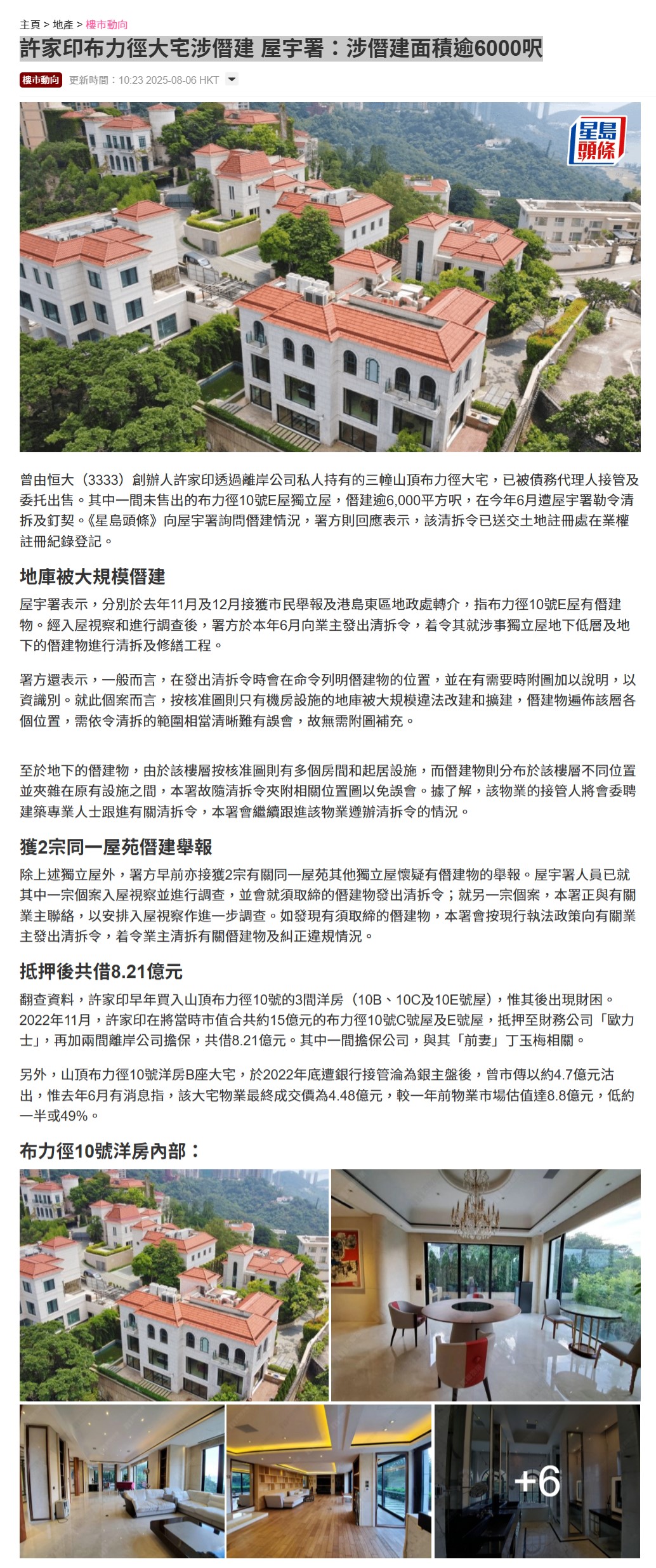 許家印布力徑大宅涉僭建-屋宇署涉僭建面積逾6000呎