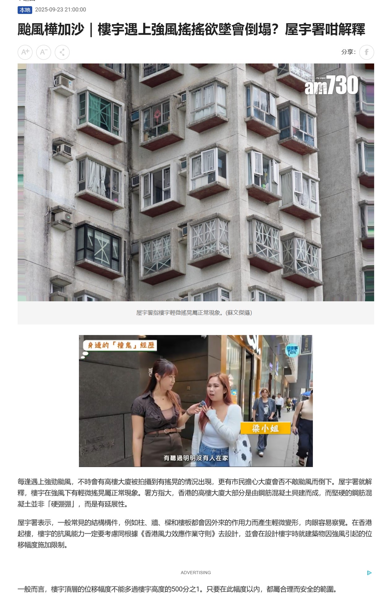 颱風樺加沙將軍澳樓宇搖晃居民暈樓浪-30幾樓直擊棟樓搖到癲-屋宇署咁講Juicy叮