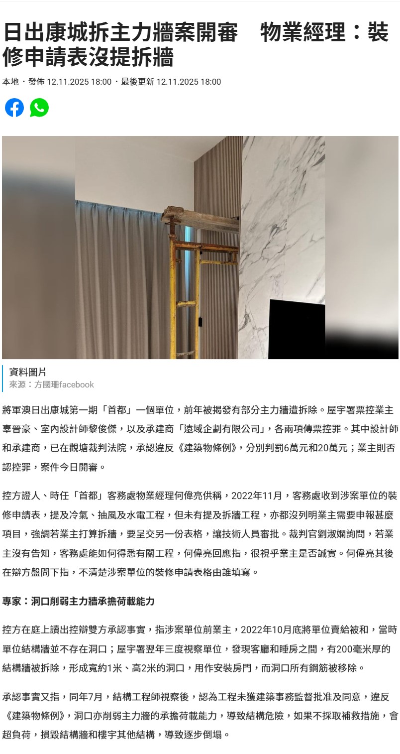 日出康城拆主力牆案開審 物業經理:裝修申請表沒提拆牆 商業電台 本地 https://www.hk01.com/article/60293856?utm_source=01articlecopy&utm_medium=referral