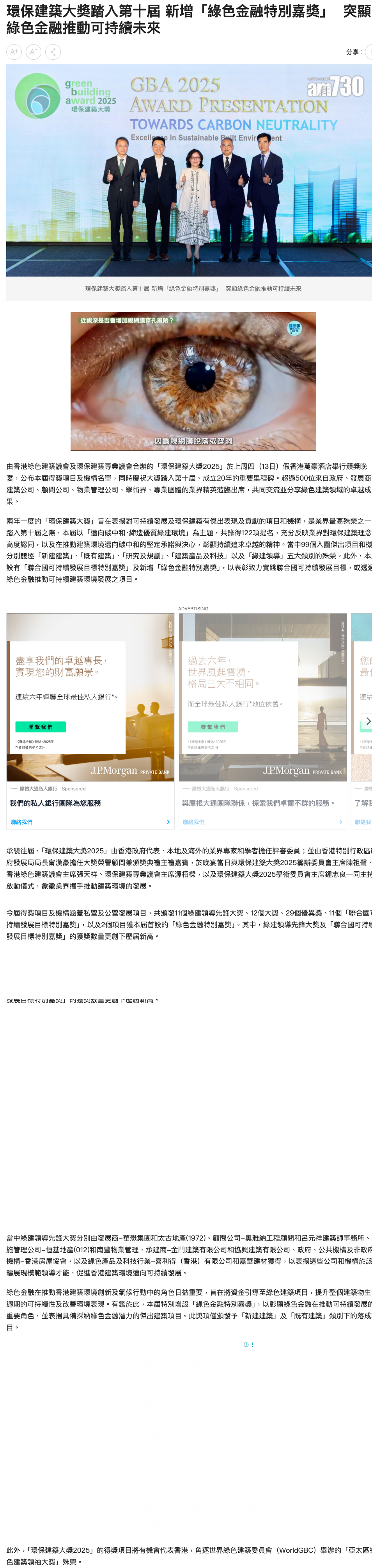 環保建築大獎踏入第十屆 新增「綠色金融特別嘉獎」 突顯綠色金融推動可持續未來 am730 地產