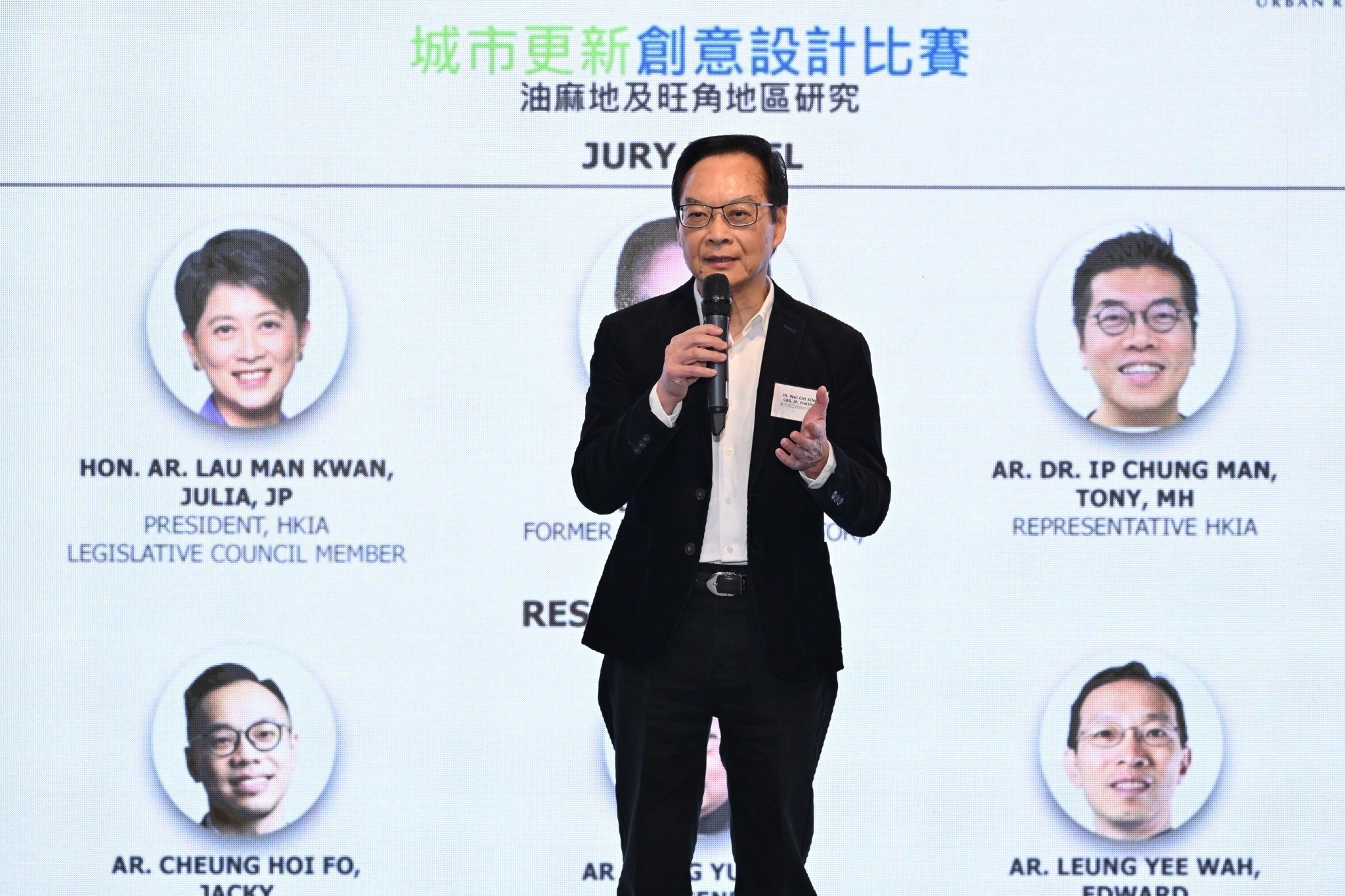 香港建築師學會會長劉文君建築師在致辭時表示:「本次比賽匯聚了來自建築、工程、園境、規劃、測量及城市設計等多個專業領域的優秀人才。我們欣喜地看到,參賽團隊在學會會員的帶領下,充分運用『地積比率轉移』等創新規劃工具,為油旺地區提出了兼具創意與可行性的更新方案。」